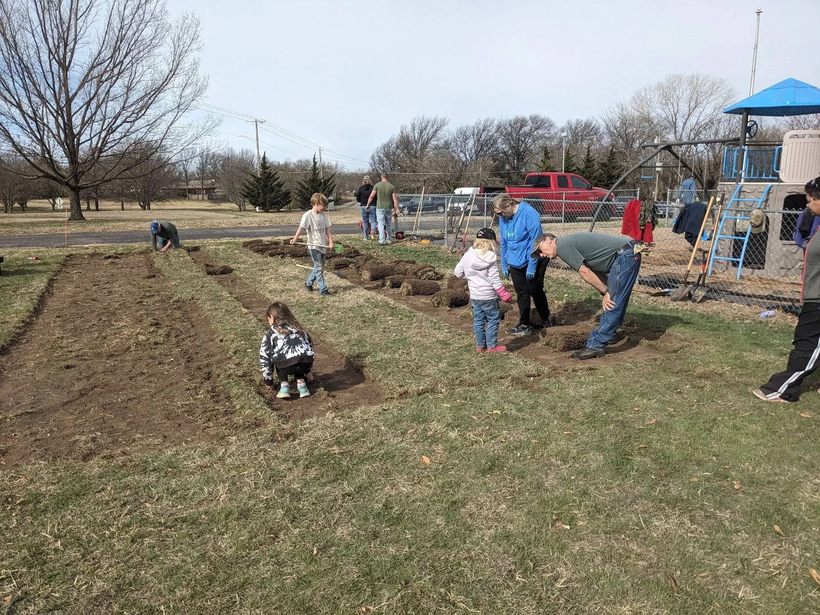 These two plots are maintained as a community. All are welcome to work this ground. The rectangle plot to the North is dedicated to growing produce for the Breakthrough Clubhouse at 1010 N Main, Wichita.